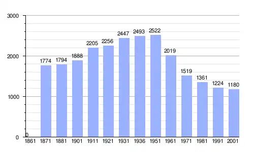 | Gráfica de evolución demográfica de San Giovanni del Dosso entre 1861 y 2001 |