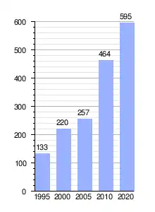 | Gráfica de evolución demográfica de San José el Mirador entre 1995 y 2020 |