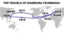 Transportó una misión diplomática japonesa de 180 personas durante la primera etapa de su viaje al Vaticano como enviados al papa Paulo V, encabezado por Hasekura Tsunenaga y acompañado por el fraile español Luis Sotelo. Después de transportar a Hasekura a México, Nueva España, el barco volvió a Japón. Hasekura y la embajada se dirigieron a Europa, llegando finalmente a Roma.