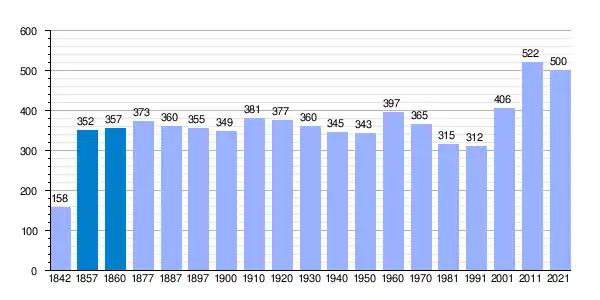 Gráfica de evolución demográfica de Sant Joan de Mollet[4] entre 1842 y 2021