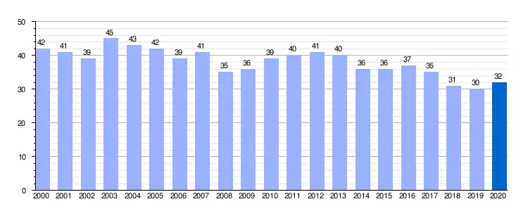 | Gráfica de evolución demográfica de San Juan de Redondo entre 2000 y 2020 |