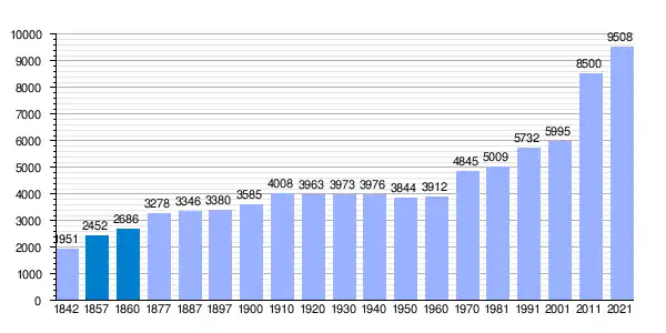 | Gráfica de evolución demográfica de San Juan del Puerto[3] entre 1842 y 2021 |