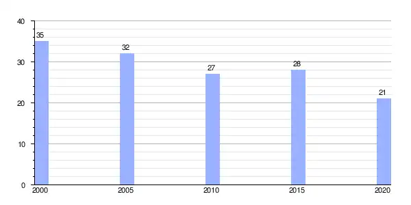 | Gráfica de evolución demográfica de Bardaos entre 2000 y 2020 |