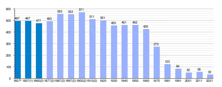 | Gráfica de evolución demográfica de San Lorenzo de Tormes[3] entre 1857ª y 2021 |