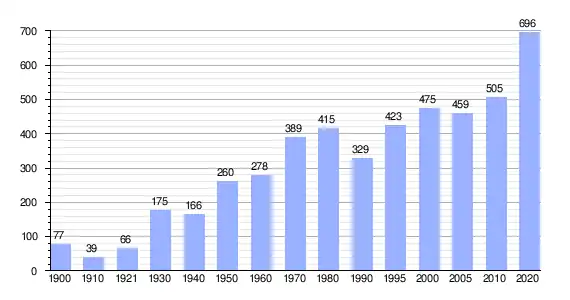 | Gráfica de evolución demográfica de San Lorenzo el Chico entre 1900 y 2020 |