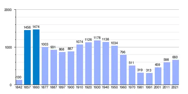 | Gráfica de evolución demográfica de Sant Martí de Llémena[5] entre 1842 y 2021 |