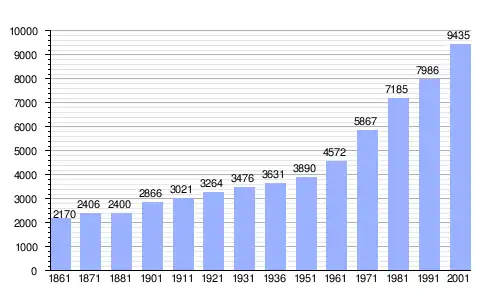 | Gráfica de evolución demográfica de San Mauro Pascoli entre 1861 y 2001 |