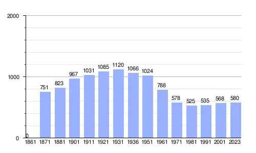 | Gráfica de evolución demográfica de San Mauro di Saline entre 1861 y 2023 |