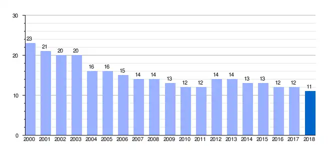 | Gráfica de evolución demográfica de San Medel[1] entre 2000 y 2018 |