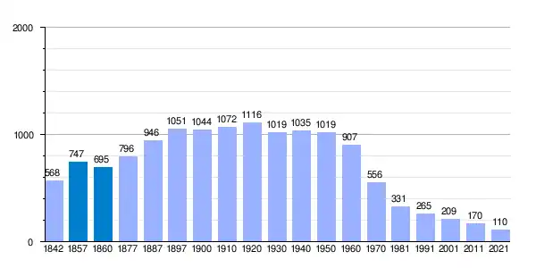 Gráfica de evolución demográfica de San Miguel de Serrezuela[4] entre 1842 y 2021