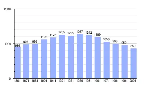 | Gráfica de evolución demográfica de San Nicola Baronia entre 1861 y 2001 |