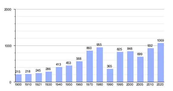 En 2020 registró una población de 1069 personas, lo que corresponde al 0.93 % de la población municipal.[7] De los cuales 507 son hombres y 562 son mujeres.[7]