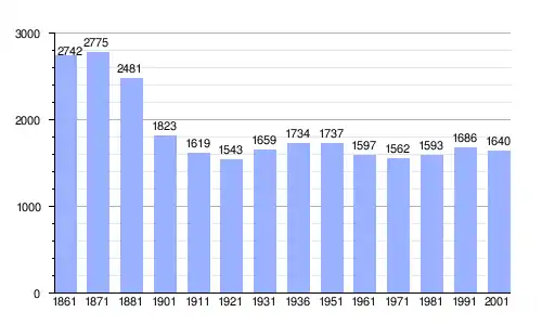 | Gráfica de evolución demográfica de San Pietro al Tanagro entre 1861 y 2001 |