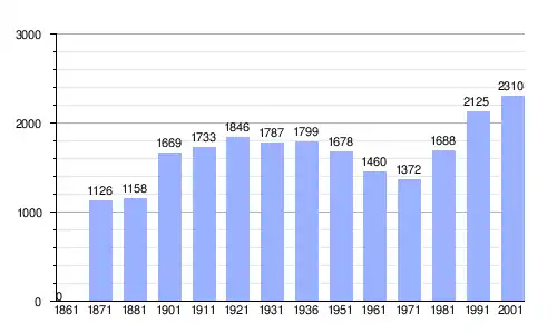 | Gráfica de evolución demográfica de San Polo dei Cavalieri entre 1861 y 2001 |