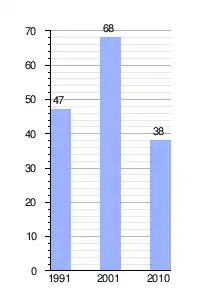 | Gráfica de evolución demográfica de San Román entre 1991 y 2010 |