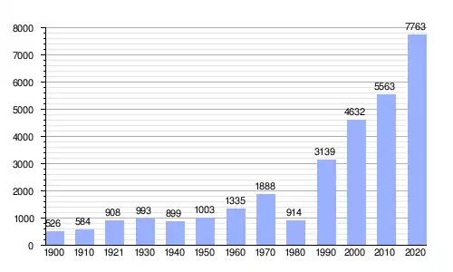 Durante el período 2010-2020, la localidad tuvo un crecimiento del 3.5 % anual de la población.[7]