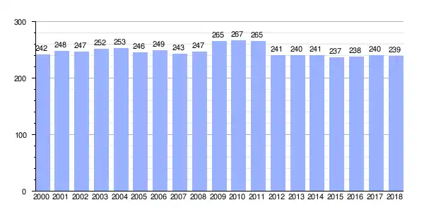 | Gráfica de evolución demográfica de Bastavales entre 2000 y 2018 |