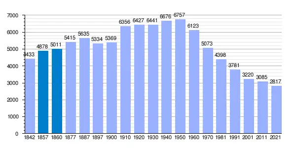 | Gráfica de evolución demográfica de San Saturnino[8] entre 1842 y 2021 |