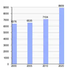 En 2020 el 49.8% de la población (4437 personas) eran hombres y el 50.2% (4472 personas) eran mujeres. El 64.2% de la población, (5719 personas), tenía edades comprendidas entre los 15 y los 64 años.[5]