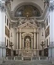 La sacristía contiene una Muerte de Cristo de Pietro della Vecchia y un Trajano ordena a san Eustaquio que rece a los ídolos de Giovanni Battista Pittoni.