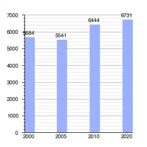 En 2020 el 48.2% de la población (3246 personas) eran hombres y el 51.8% (3485 personas) eran mujeres. El 63.5% de la población, (4277 personas), tenía edades comprendidas entre los 15 y los 64 años.[5]
