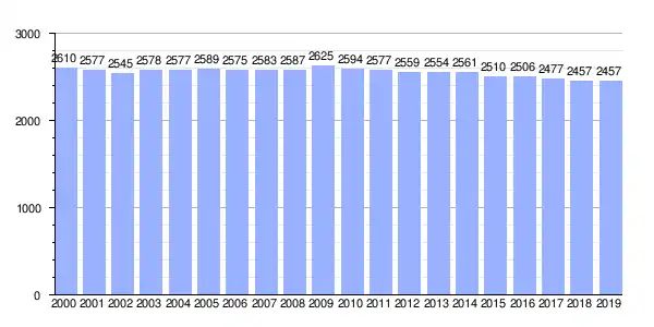 | Gráfica de evolución demográfica de Noal (lugar) entre 2000 y 2019 |