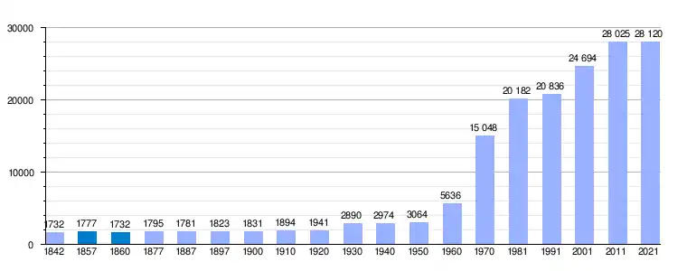 | Gráfica de evolución demográfica de Sant Vicenç dels Horts[7] entre 1842 y 2021 |