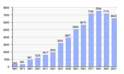 | Gráfica de evolución demográfica de San Vincenzo entre 1861 y 2001 |