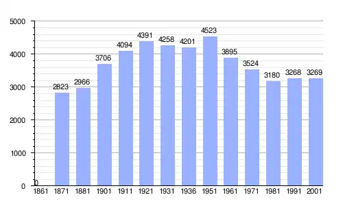 | Gráfica de evolución demográfica de San Vito Romano entre 1861 y 2001 |
