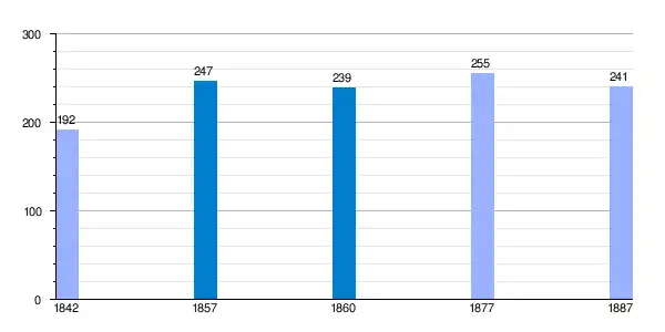 | Gráfica de evolución demográfica de Sandinies[2] entre 1842 y 1887 |