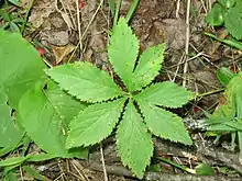 Tiene hojas con lóbulos profundamente incisos que irradian desde el mismo punto. Cada hoja no tiene el mismo número de foliolos, pero por lo general tienen 5-7. La planta no es alto, pero el tallo de fructificación se elevará hasta los 2 metros, teniendo flores verdes diminutas en primavera. En el otoño el tallo fructífero lleva fruta dehiscente que se divide, teniendo pequeñas espinas.