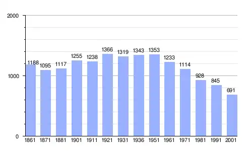 | Gráfica de evolución demográfica de Sant'Arcangelo Trimonte entre 1861 y 2001 |