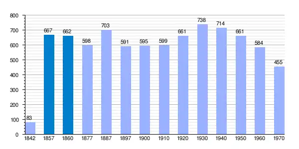 | Gráfica de evolución demográfica de Sant Antolí y Vilanova[4] entre 1842 y 1970 |
