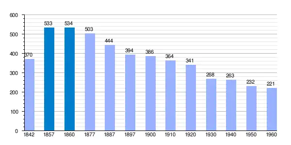 | Gráfica de evolución demográfica de Sant Romá de Abella[4] entre 1842 y 1960 |