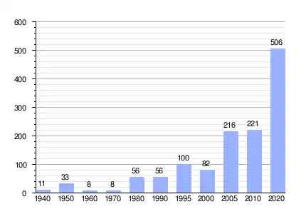 | Gráfica de evolución demográfica de Santa Catarina entre 1940 y 2020 |