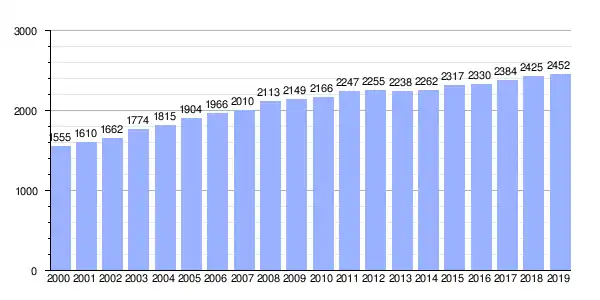 | Gráfica de evolución demográfica de Santa Comba (parroquia) entre 2000 y 2019 |