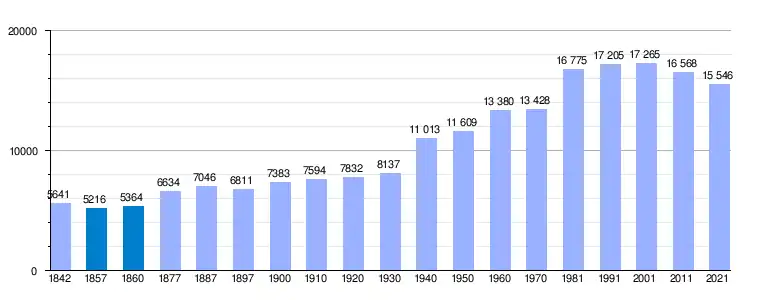 | Gráfica de evolución demográfica de Santa Cruz de la Palma[10] entre 1842 y 2021 |