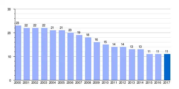 | Gráfica de evolución demográfica de Santa Eulalia[3] entre 2000 y 2017 |