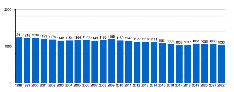Gráfica de evolución demográfica de Santa Eulalia[8] entre 1998 y 2022