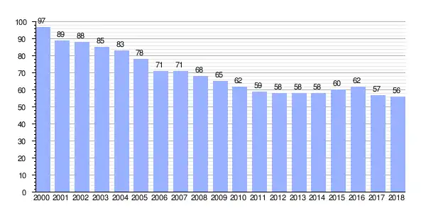 | Gráfica de evolución demográfica de Monfero[3] entre 2000 y 2018 |