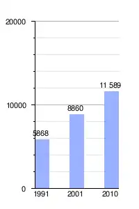 | Variación intercensal | + 30,8 % (2001 - 2010) | |