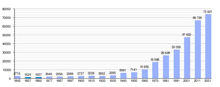 Gráfica de evolución demográfica de Santa Lucía de Tirajana[11] entre 1842 y 2021