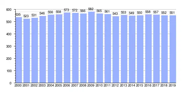 | Gráfica de evolución demográfica de Santiago entre 2000 y 2019 |