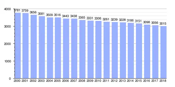 Gráfica de evolución demográfica de Neda entre 2000 y 2018