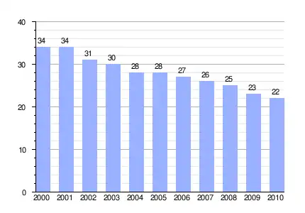Población de derecho (2000-2010) según los censos de población del INE a 1 de enero de cada año.[4] |