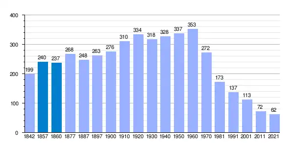 | Gráfica de evolución demográfica de Santa María del Val[2] entre 1842 y 2021 |