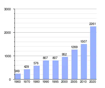 | Gráfica de evolución demográfica de Santa María la Calera entre 1960 y 2020 |