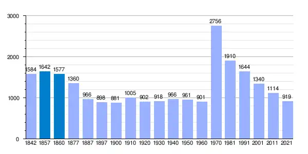 | Gráfica de evolución demográfica de Santa María la Real de Nieva[14] entre 1842 y 2021 |