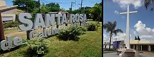 Desde arriba, de izquierda a derecha: Cartel en la entrada • Cruz (acceso al pueblo) • Vista aérea de Santa Rosa de Calchines • Parroquia Santa Rosa de Lima • Capilla San Antonio