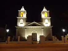 Imagen nocturna de la Parroquia Santa Rosa de Lima.